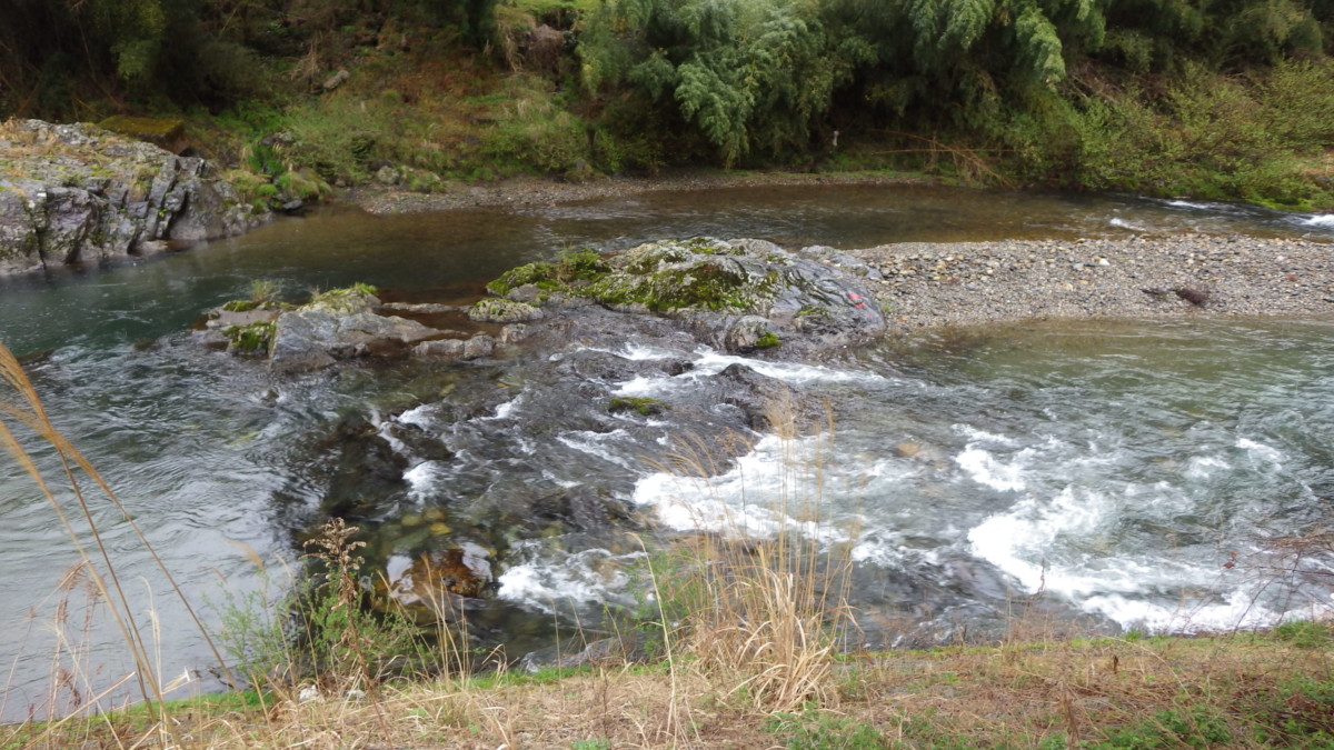 現在の水位は、本流は平水、支流棚野川は-15cm減水、共に濁りの無い状態です。