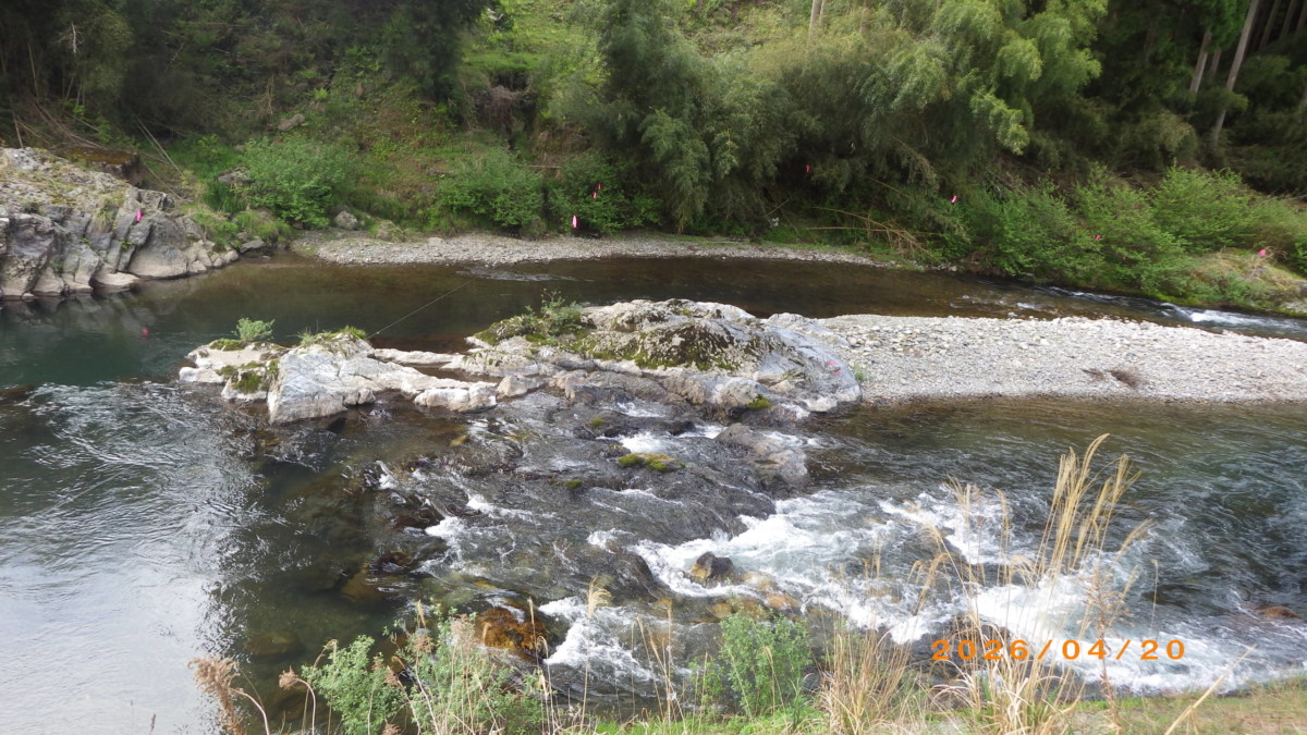 現在の水位は、本流は-10cm減水、支流棚野川は-25cm減水、共に濁りの無い状態です。