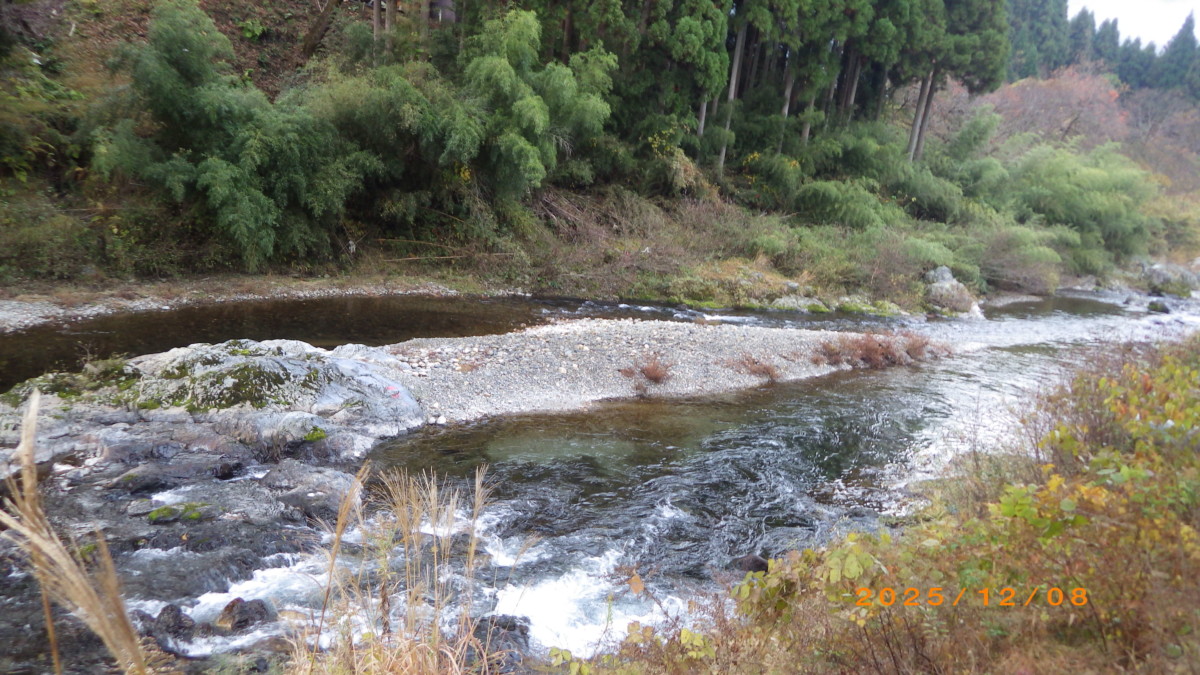 08Dec2025 水況:平屋大橋 2025.12.8 8:00 全川遊漁可能。 現在の水位は、本流は平水、支流棚野川は-25cm減水、共に濁りの無い状態です。 先週は初雪も降り、12月らしい気候となってきています。 落葉も進み、景観も寂しくなってきています。 さて、来年春のあまご稚魚放流に向けて、今週はあまご孵化の準備が始めます。 水況:平屋大橋 最近のお知らせ一覧お知らせ一覧 水況:平屋大橋 2025.12.01 水況:平屋大橋 2025.11.25 水況:平屋大橋 2025.11.11 水況:平屋大橋 2025.11.04 水況:平屋大橋 2025.10.31
