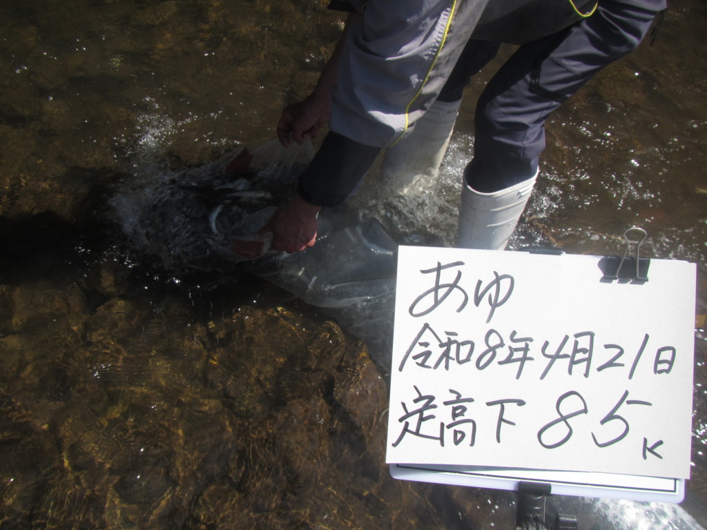 21Apr2026 稚鮎放流170k 鮎解禁に向けて、今シーズン6回目の稚鮎放流を行いました。 高松橋上流85k、定時制高校下85k、計170kを放流しました。 天気は晴れですが、強風の中での放流となりました。 次回は、明日4/22を予定しています。 水況:平屋大橋 最近のお知らせ一覧お知らせ一覧 水況:平屋大橋 2026.04.20 稚鮎放流170k 2026.04.17 稚鮎放流170k 2026.04.15 稚鮎放流170k 2026.04.14 水況:平屋大橋 2026.04.13